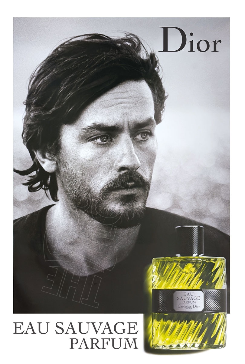 Original poster featuring the not and less famous Alain Delon, whose photo is taken from the film 'Les Aventuriers', directed in 1966 by Robert Enrico. This poster is a very rare variant where one finds the visual of the perfume bottle rather than that of the cologne.