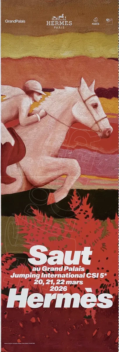 The original poster published in "Colonne Morris" format as every year for the promotion of the famous event "Saut Hermes" held this year and for this 16th edition at the Grand Palais. The house of Hermès had invited the best riders in the world to compete in the 10 events of the CSI 5* Jumping.