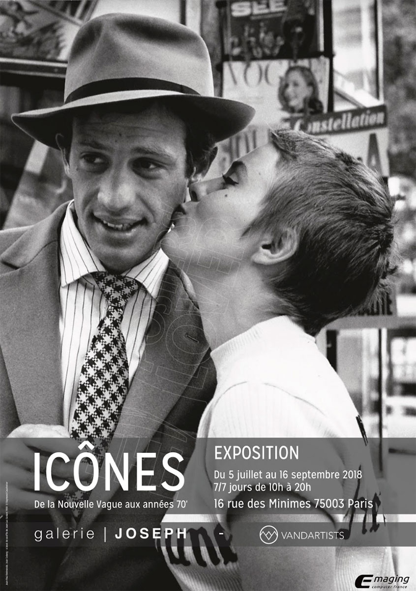 Magnificent wheatpasting campaign for the exhibition "ICONS" organized by the famous Joseph Gallery whose theme is: "From the New Wave to the 70s". Composed of 4 original and official posters, this exhibition presents the first photographic retrospective of French cinema icons seen by the two greate ... (Full description below)