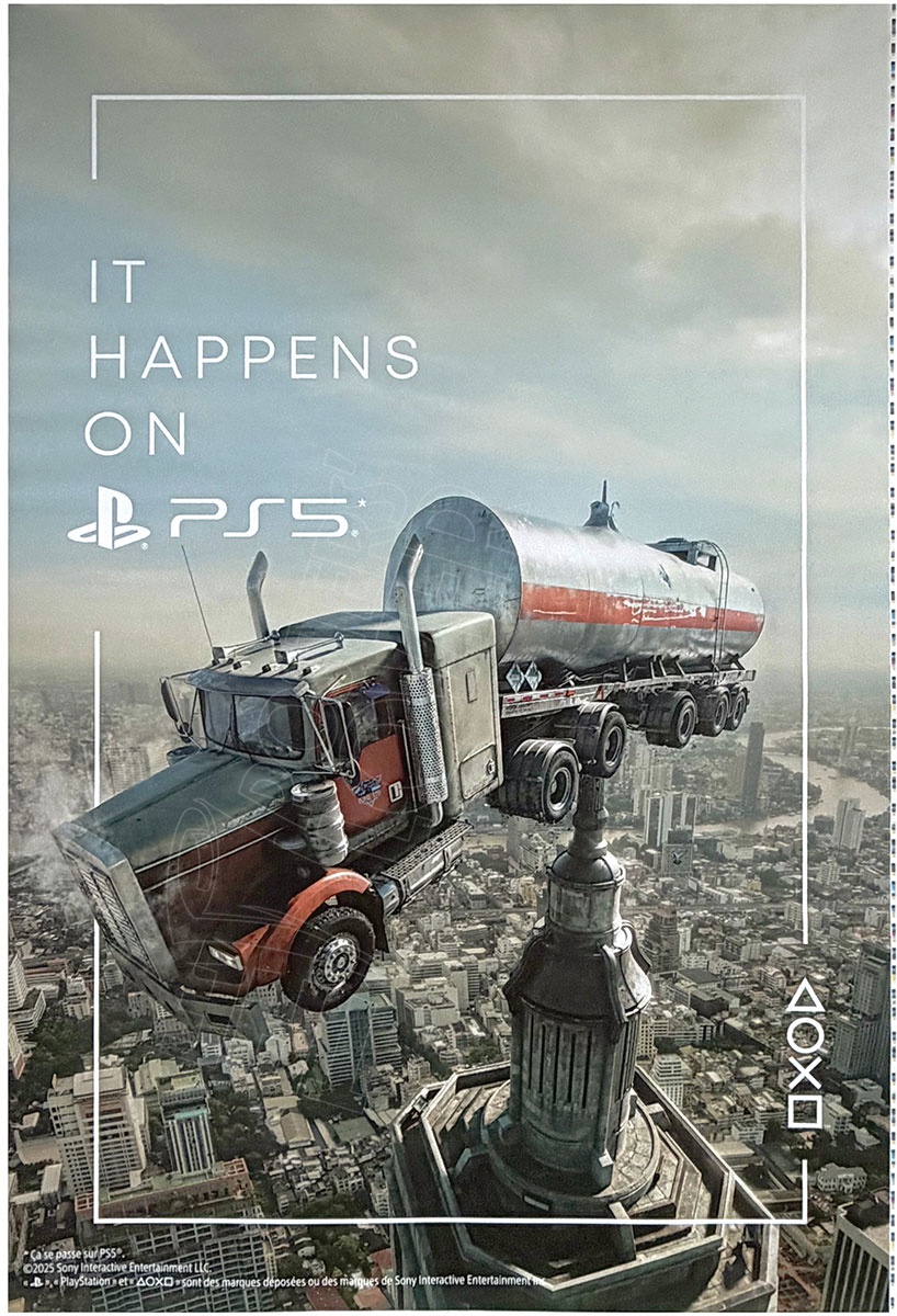 Superbe affiche originale éditée pour fêter les 5 ans de la PSP5 de Playstation et Sony profite de l’occasion pour rappeler pourquoi sa console reste le symbole du jeu vidéo haut de gamme. Pour ce lancement, deux affiches on été retenues pour être à l'honneur sur les mobiliers urbains.
