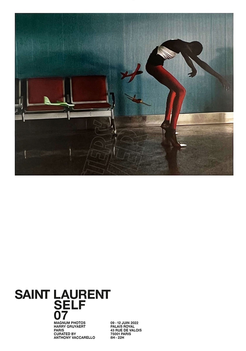 Très belle affiche publicitaire originale pour l’exposition SAINT LAURENT Self 07 qui s’est tenue dans les jardins du Palais Royal du 9 au 12 juin 2022 à l’occasion de la 7ème édition du projet “Self” de la Maison SAINT LAURENT. YSL Saint Lauren a invité six artiste pour six ville. Pour Paris, c'est le photographe Harry Gruyeart qui à réinterpréter la personnalité de la marque et qui s’est inspiré de son propre projet “Last Call” composé de clichés pris dans des aéroports à travers le monde et ici à Roissy-Charles-de-Gaulle.